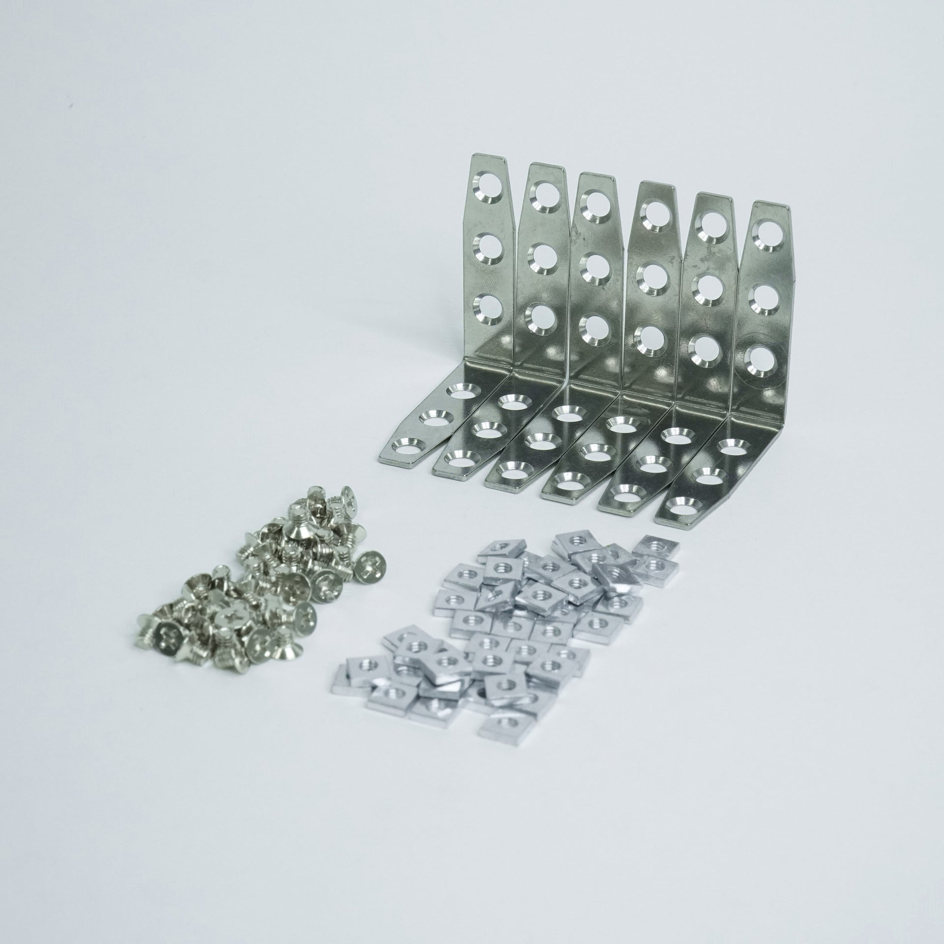 For 12x12mm Profiles, Extended L-Shaped Corner Connector (6 Pieces); Sliding Nut M3 (50 Pieces) and Countersunk Head Screw M3x4mm (50 Pieces)