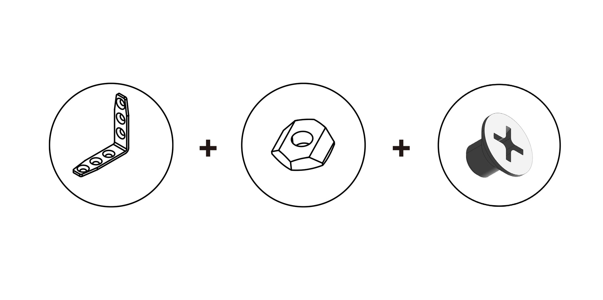 For 10x10mm Profiles, Extended L-Shaped Corner Connector (6 Pieces); Sliding Nut M3 (50 Pieces) and Countersunk Head Screw M3x4mm (50 Pieces)